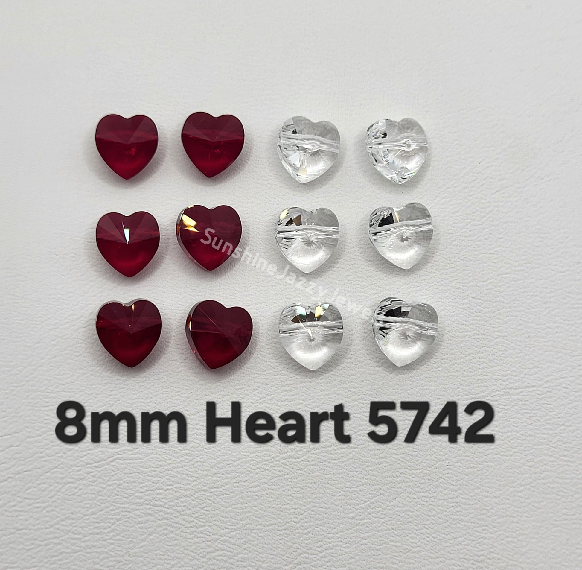 #5742 - Swarovski Crystal 8mm Heart Beads; Clear, Clear AB, or Siam