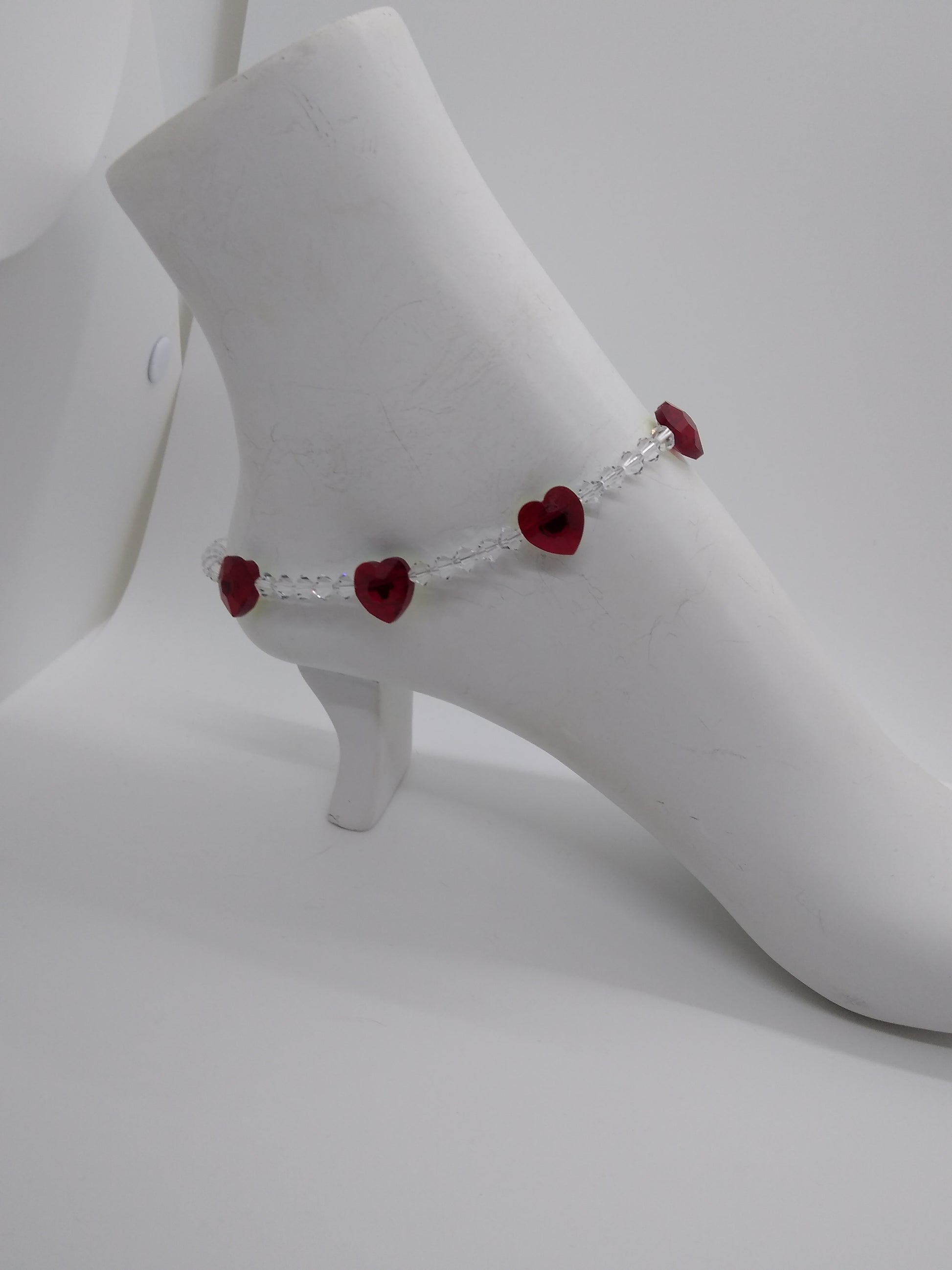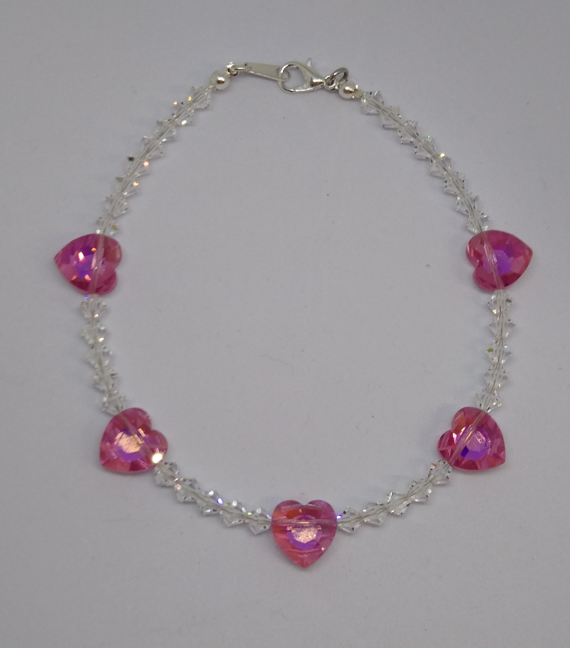 Bracelet/ Anklet - Swarovski Crystal Heart Beads; MULTIPLE COLOR CHOICES