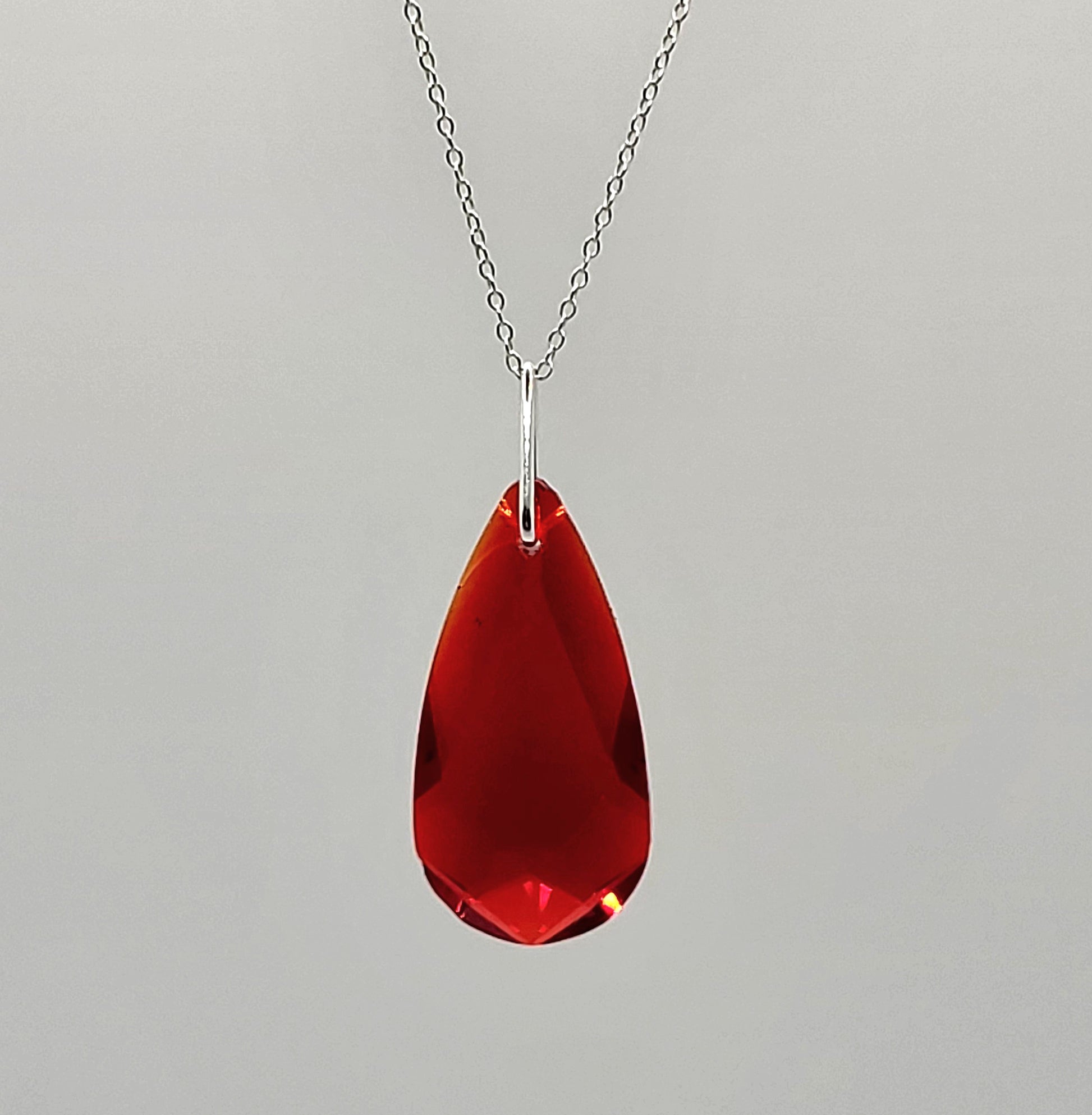 Sterling Silver Necklace - Swarovski Crystal Light Siam Teardrop Pendant; LAST ONE