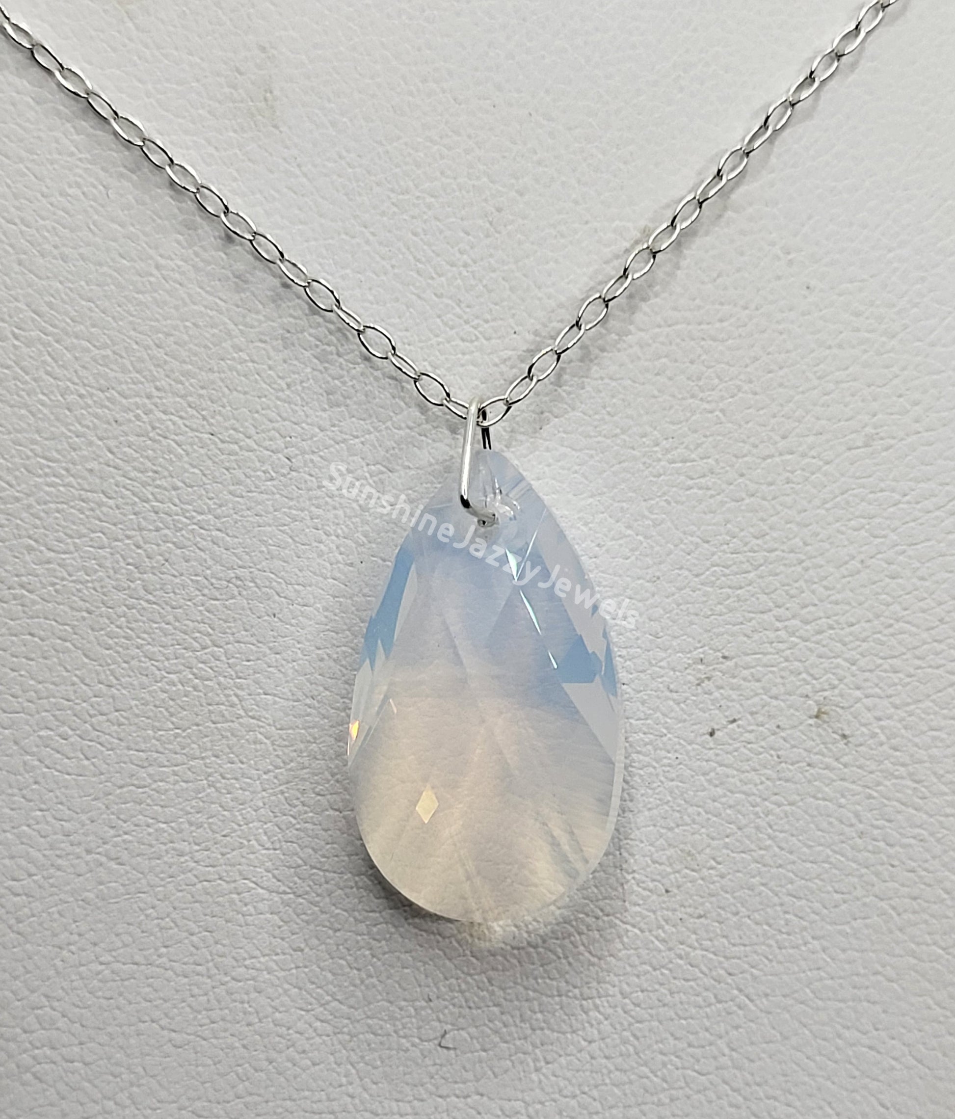Sterling Silver Necklace - Swarovski Crystal White Opal Pear Pendant; LAST ONE